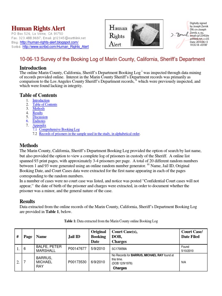 Booking Log Marin County Jail